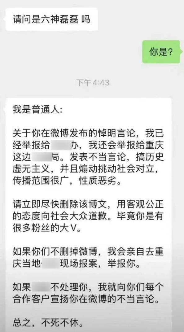 可以看到,举报者举报六神磊磊的理由,是他认为六神磊磊搞历史虚无主义,并且煽动挑动社会对立,传播广,性质恶劣……
