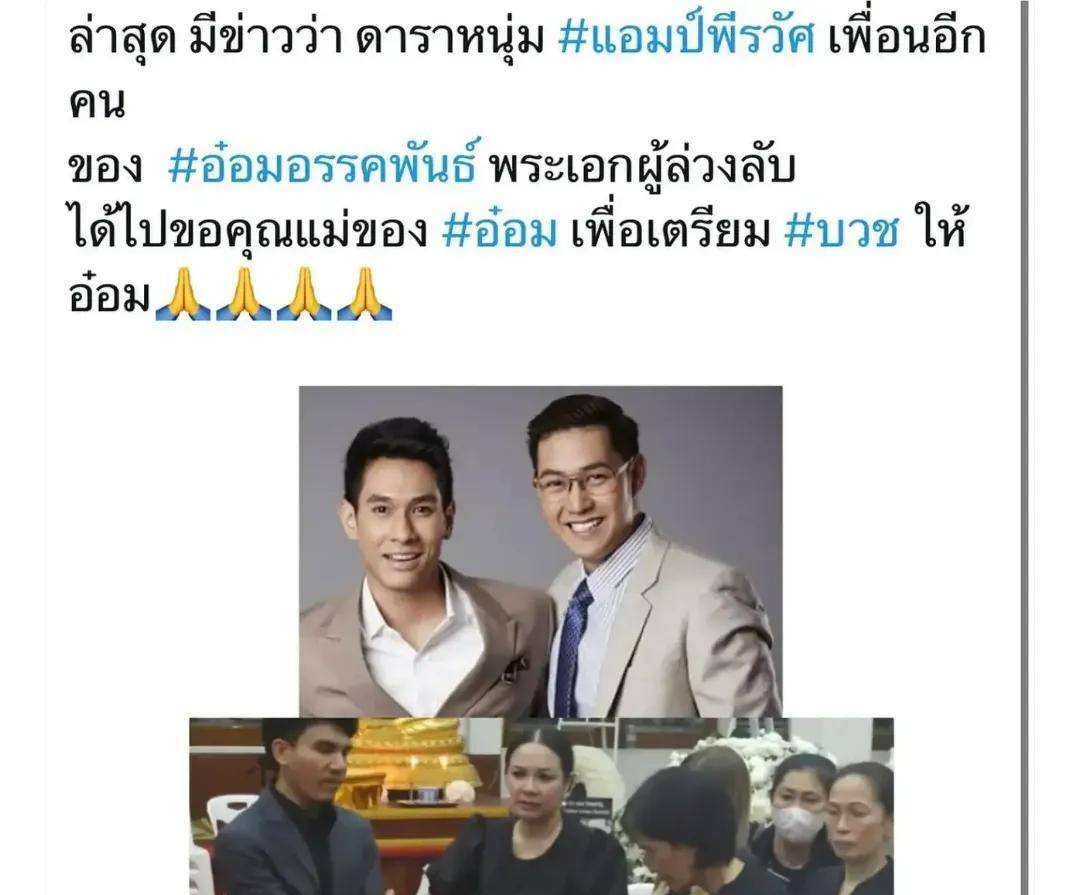 好兄弟Weir最早一天便抵达灵堂,送上以家人名义致赠的花圈。其他七台明星如Mik、New、Vee、Mike、Thanwa、Preaw、Kem、Porshe、S、Cee、Pei等也陆续前来,送别Om最后一程。