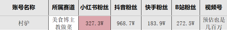 这是一位非常资深的美食博主,组要是教大家如何做菜,如果有小伙伴是做这个赛道,可以去学习。矩阵的意识还是很强的,基本下面几个平台都是大几百万的粉丝,这个博主一开始应该是抖音起家的,看看粉丝的量就知道了。