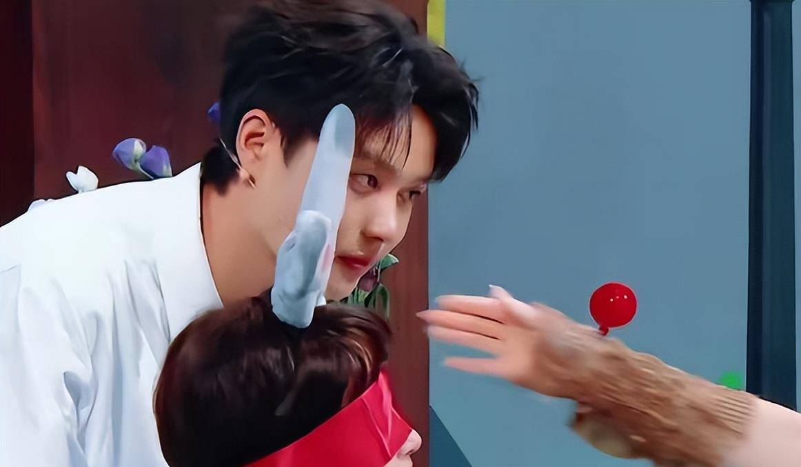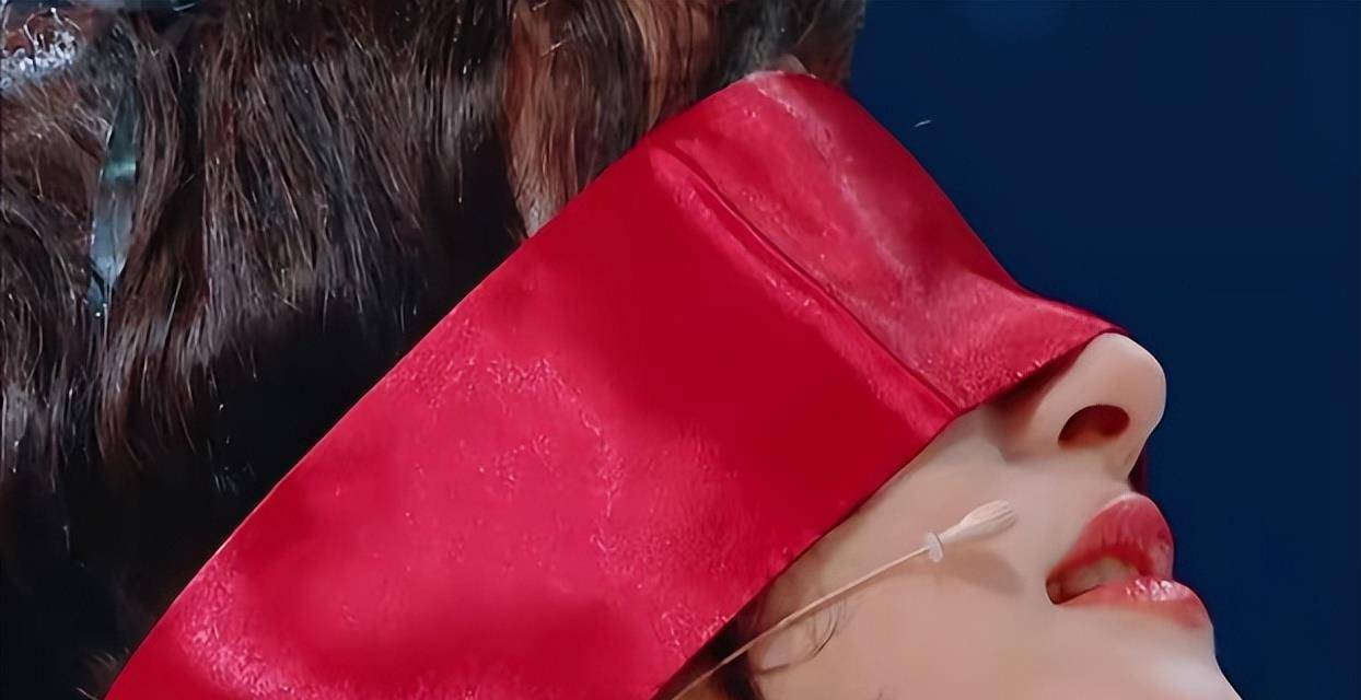 当时以红色领带作为道具,柯滢亲手将其蒙在关晓彤眼上。