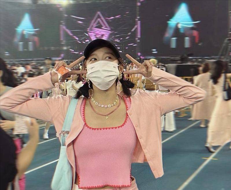 因汪苏泷的应援色是粉色,关晓彤也以粉色系服装为主。