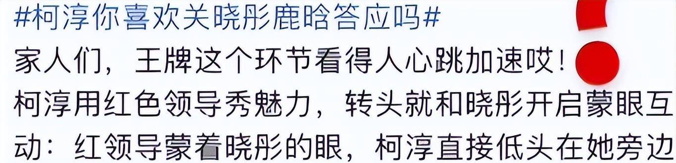 因此,这期节目播出后,“柯滢你喜欢关晓彤鹿晗答应吗”的词条迅速冲上热搜。