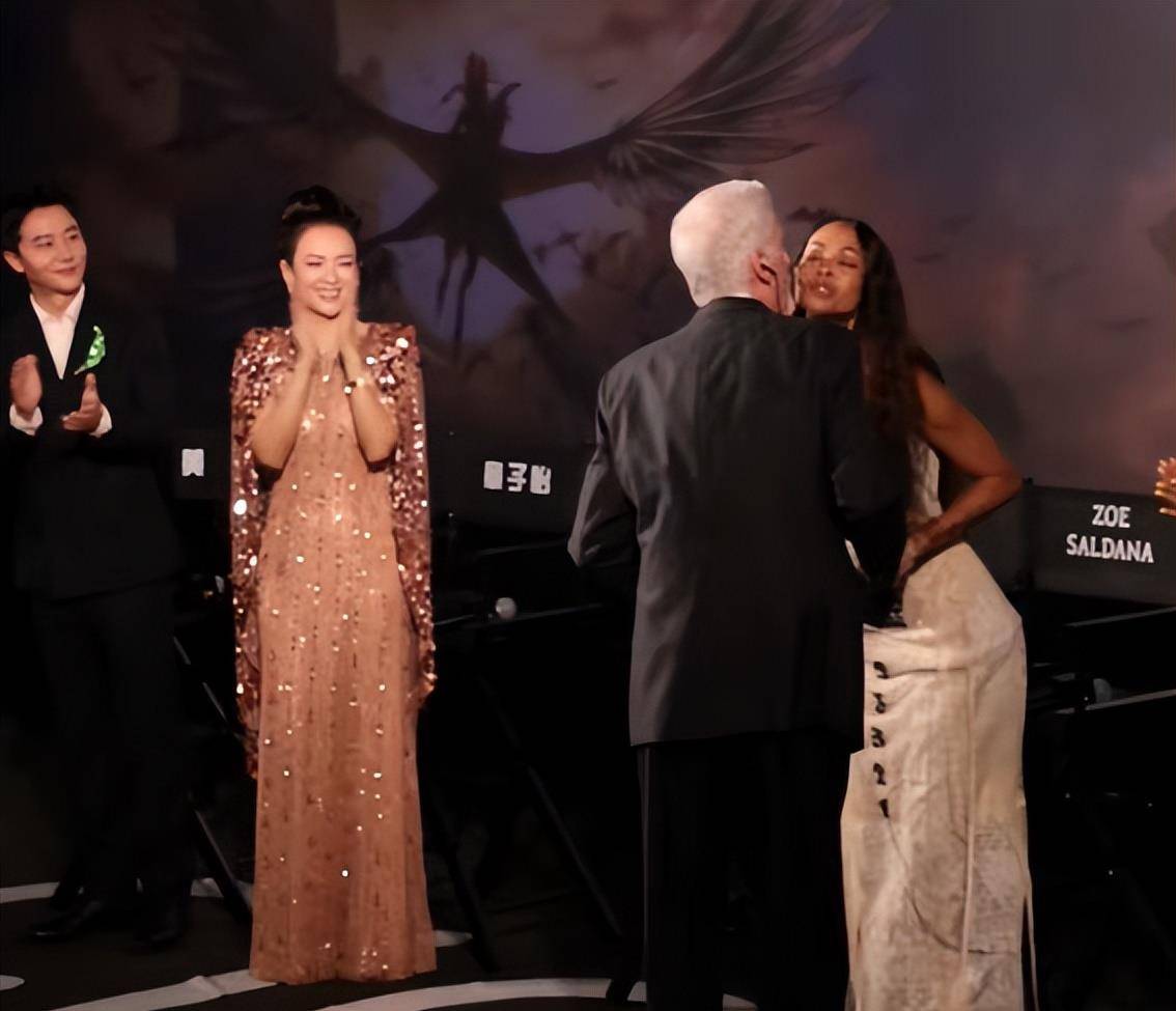 但面对阿凡达的主角Zoe Saldana时,卡梅隆导演却是行上了“亲吻礼”。