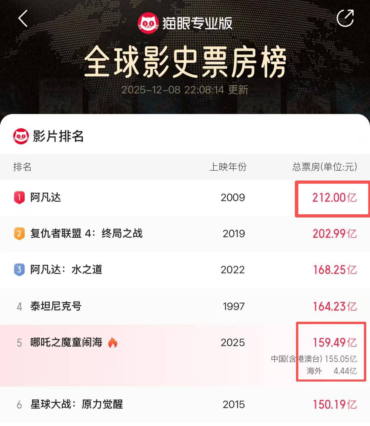 上映至今,这部电影仍旧霸占着全球票房排行榜的第一名,票房高达212亿,比《哪吒2》还要高出53亿,差距非常明显。
