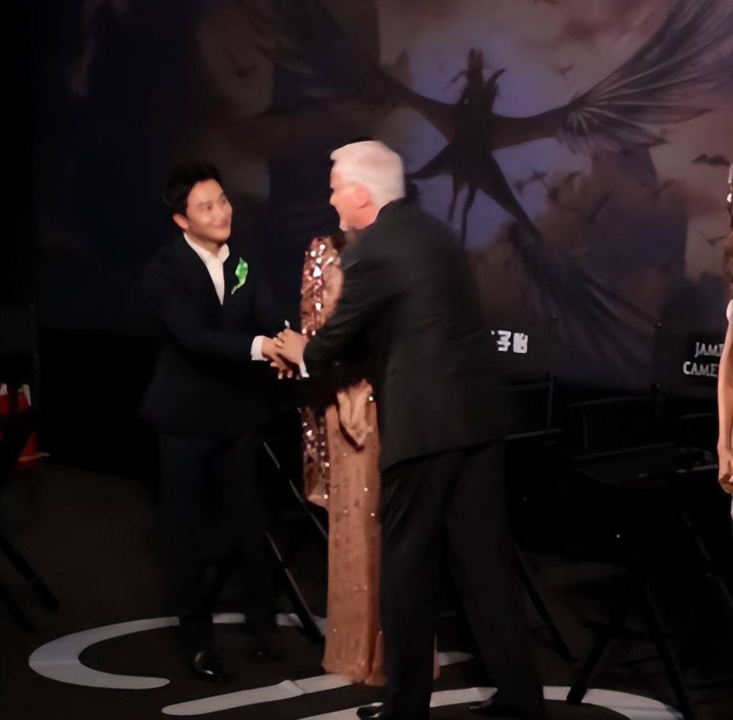 跟咱们国内演员打招呼时,卡梅隆导演都是点到为止,或拥抱、或握手。