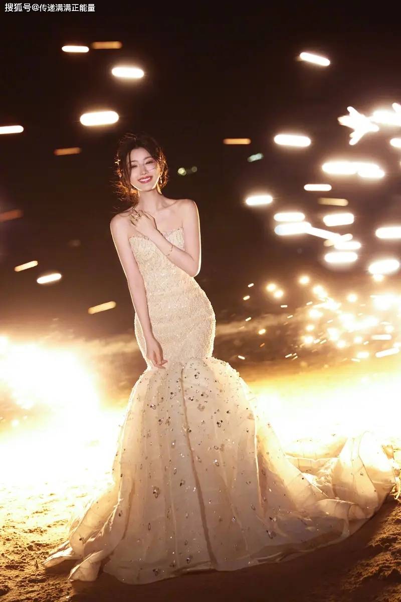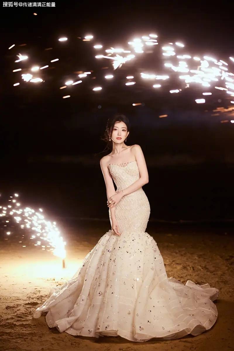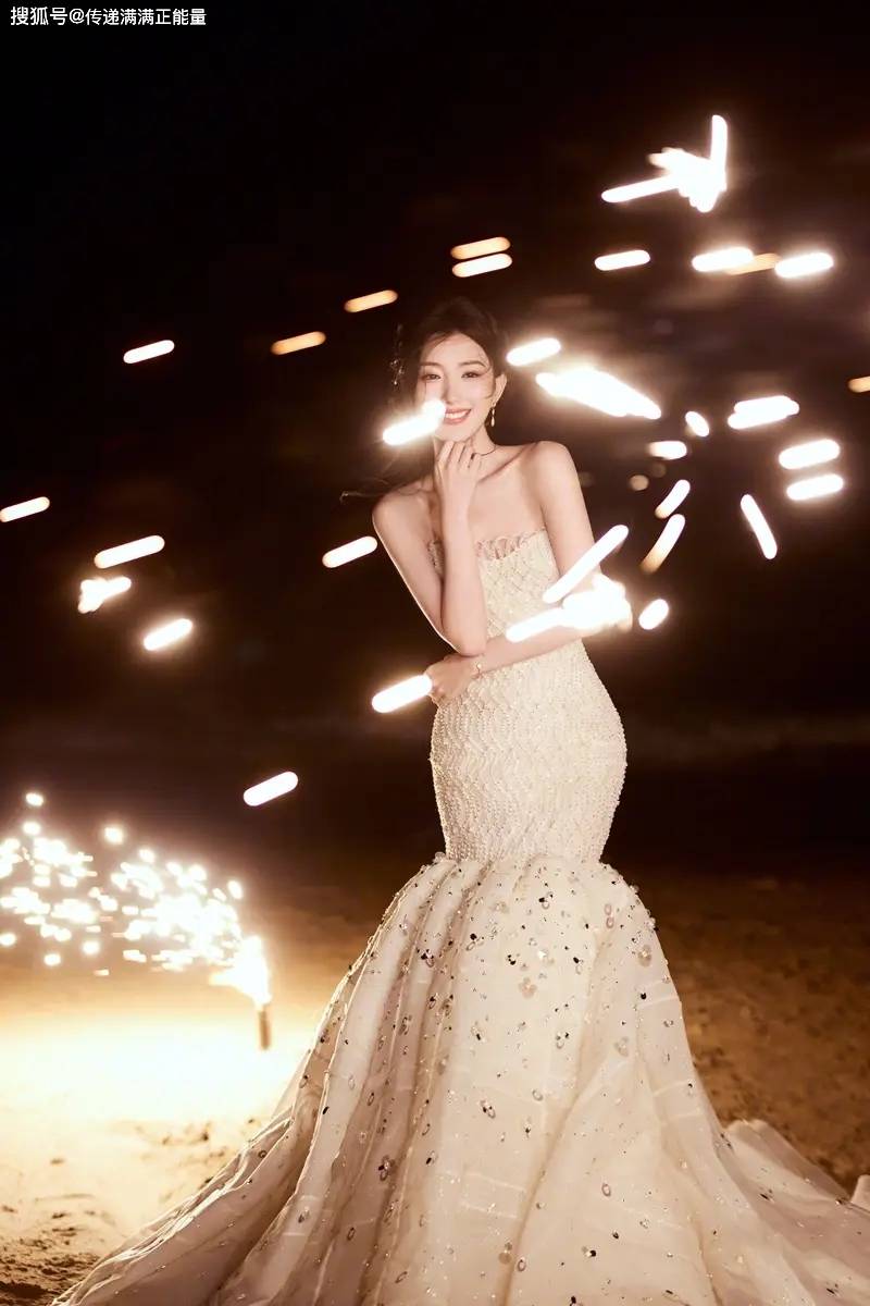 再说选在海边放烟花。红毯上拍照多安全,可她偏要风。裙摆被吹起,头发也不那么“听话”,但烟花炸开那一秒,她整个人是亮的。这像不像她处理那些糟心事的姿态,不躲,反而迎着风站,背景越乱,人越清晰。