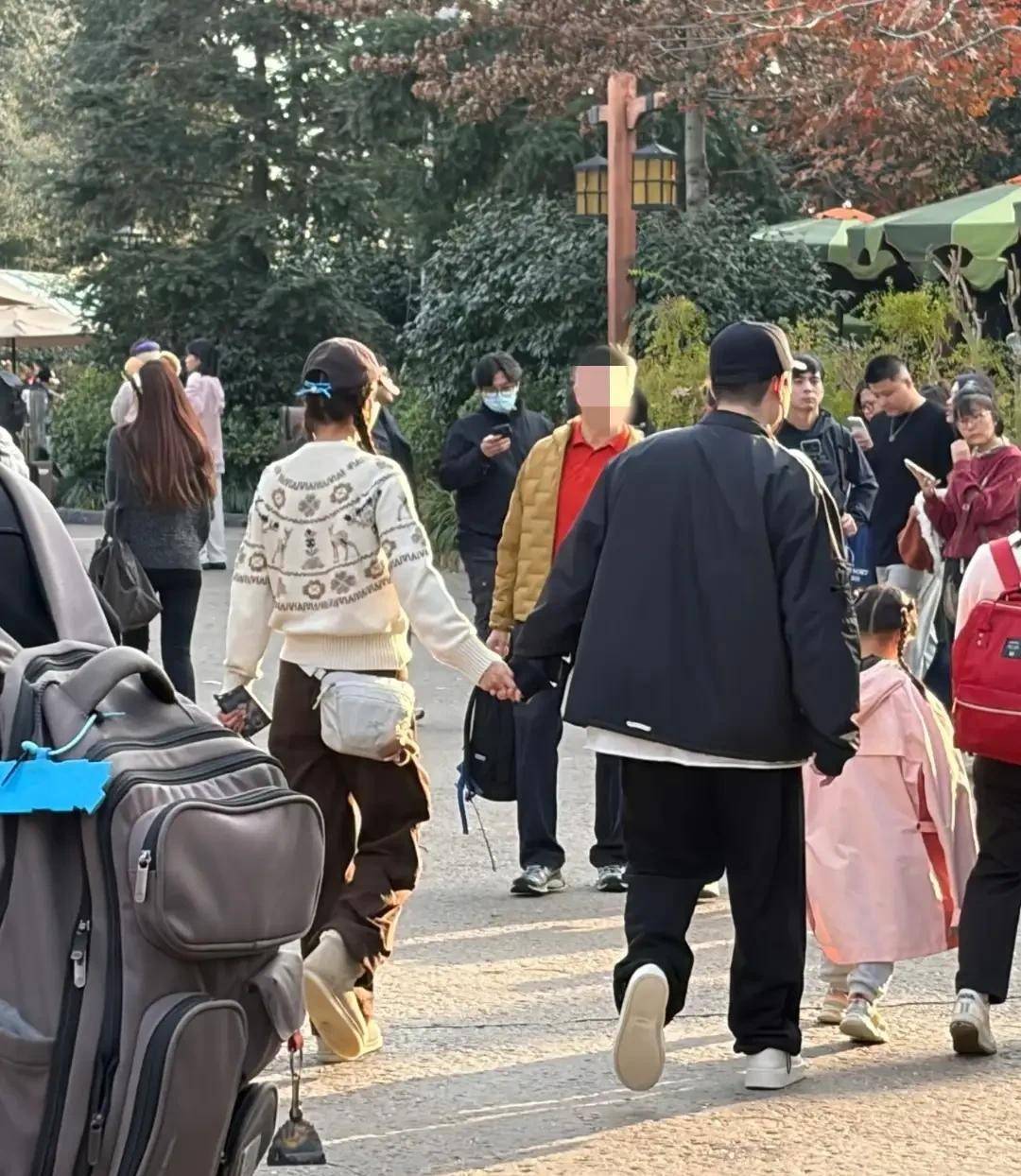 陈赫一家迪士尼欢乐游,俩女儿萌态足,41岁张子萱扮少女牵手撒娇(陈赫全家)