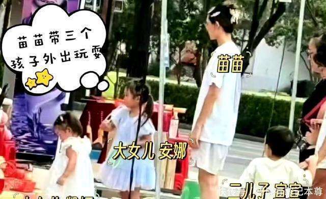 近日,有网友拍到苗苗带着三个孩子一起外出游玩,分别是她的大女儿安娜、二儿子宣宣和小女儿凯娅。