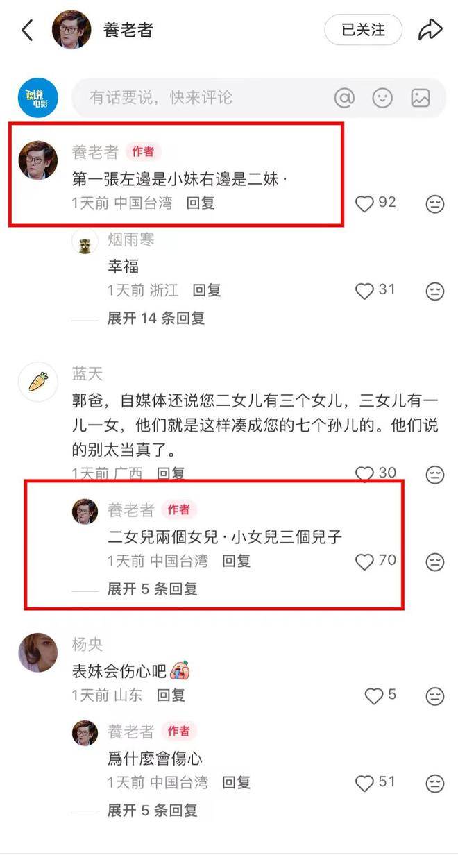 郭爸爸年纪大了,确实需要照顾。郭碧婷付出了很多,也是应该的,因为她是大女儿。其他两个妹妹也会经常照顾郭爸爸,小女婿们还会陪他去化疗,每次化疗都要三个多小时。二女婿虽然在国外工作,但休假时也会回湾湾探望父亲。郭爸爸觉得,三个女儿就像是他的小棉袄,非常温暖,他应该为有这样的女儿们而感到幸福。