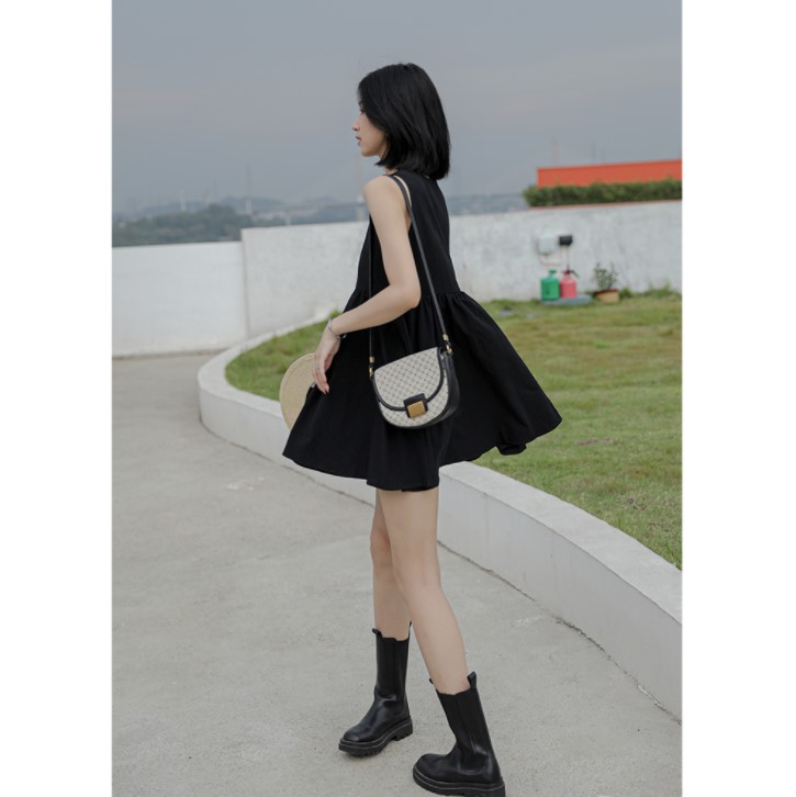 除了上面一种,小个子还可以选择六分过膝的连衣裙,稍微过膝,但不会太夸张,因为对于矮个子来说,最忌讳的就是五五分的穿搭,六分过膝的连衣裙能巧妙拉长下半身比例,给人一种小腿很长的错觉,还显瘦,但切记,如果是小腿粗的女生就不太适合了。