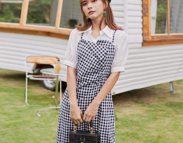 在现在这个时候穿是最合适的,深色系的吊带裙可以内搭一件颜色较为鲜艳的衬衫,纯色系的呢可以搭配格子衬衫,系在腰间或者当薄外套穿都非常合适。