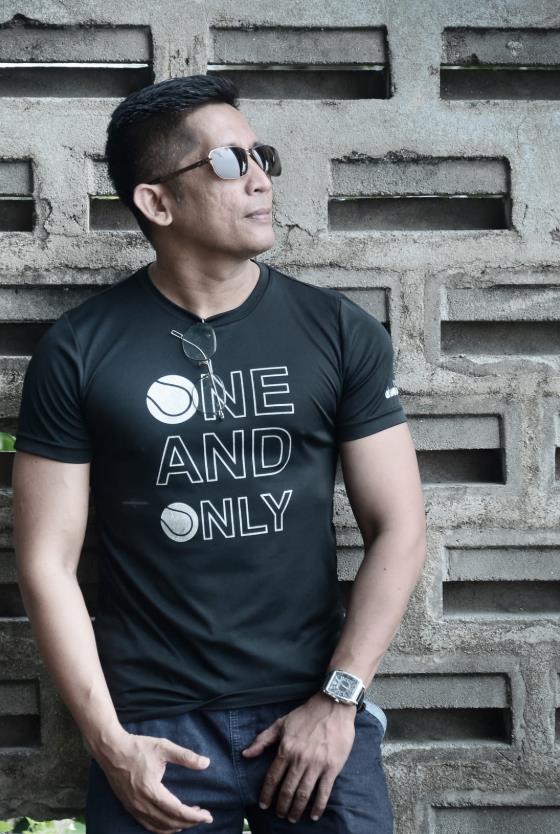 黑皮肤男生穿衣术二:玫瑰红条纹T恤+深蓝短裤