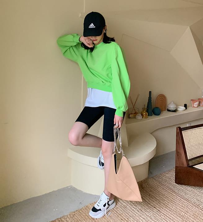 3、长t恤搭配短裤:这种搭配方式可以穿出流行的下衣失踪风格,也可以搭配长一点的短裤,让短裤露出点裤边,既好看又有点小性感。
