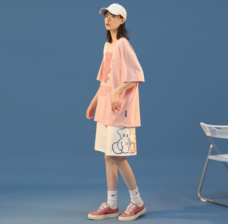 粉色是比较难搭配的,粉色短袖搭配一条红色A字短裙效果意外的好,很显青春活力。