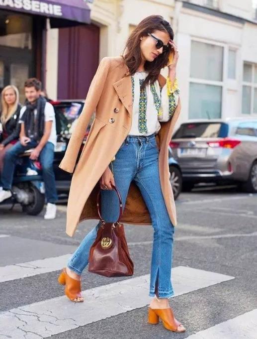 3、搭配蓝色牛仔或者黑色牛仔以及T恤: