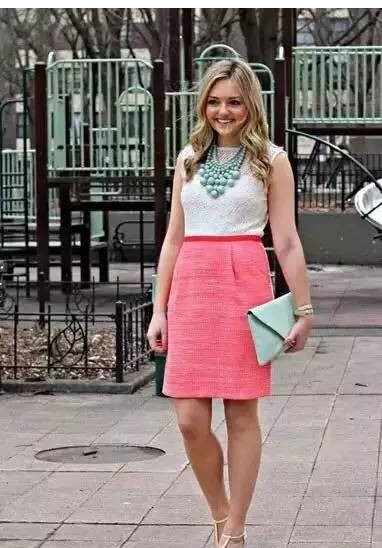 苹果型身材腰部比较粗了,那么在下装的选择上,最好别选太宽松的,否则上身腰粗下装又显得比较肥大,这样一来整体都是显胖的了。建议下装选择微微有些宽松的就好,最好避免太宽的阔腿裤,或裙摆太大的裙子,例如蓬蓬裙蛋糕裙等。