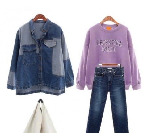 短款紫色卫衣内搭白色长款衬衫,非常时尚的搭配,不但有很好的减龄效果,同时能够在一定程度上彰显出个人非常小清新的气质。