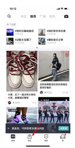 首先,打开得物app的【购买】页面;