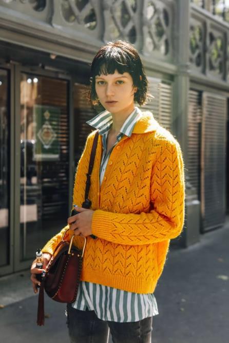 推荐轻质纱裙的小心思和皮裙类似,大毛衣难免显得厚重,纱裙的轻巧质感能让整体看起来轻盈不少,而且很容易穿出街拍的感觉。如若要穿质地偏硬的长裙,务必选那些有开衩设计的款,能在视觉上让你看起来轻一些、再轻一些。