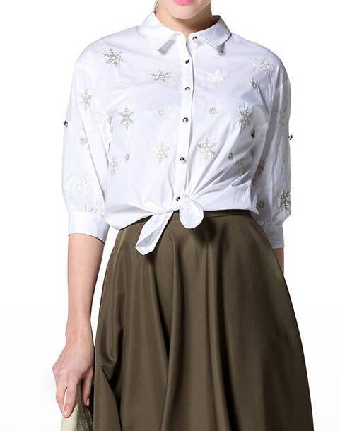 有些菇凉会把衬衫反着穿,那么这时候打个结也很不错。
