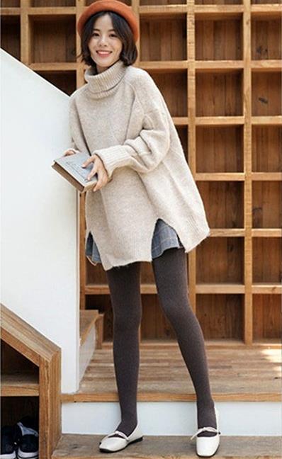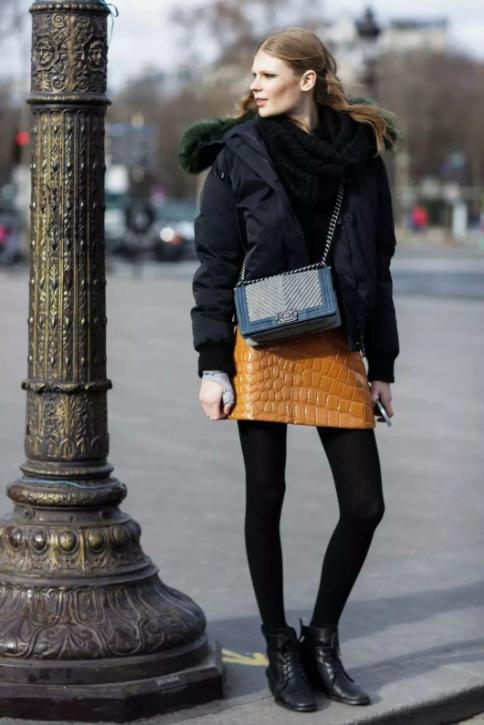 2、高腰A字裙+打底裤是秋冬最显高的搭配。A字裙修饰身形的效果非常的好,高腰A字裙能拉长下半身比例,让腿看起来更加的长,修饰腿部线条,让整个人看起来更加的苗条,更加的显高挑。秋冬如果光腿穿裙子一出门,会马上冻得你想雕塑。这时候搭配瘦腿打底裤就能很好地起到保暖的效果。瘦腿的打底裤还能修饰腿部线条,让女生的腿看起来更加的细长,显得更加的性感。