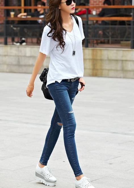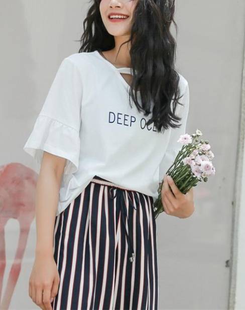 T恤搭配高腰阔腿牛仔裤,先把前部分的衣角扎起来然后再扎进裤子里,不但能很好的彰显出诱人的小蛮腰,同时更是有着很强的青春张力。