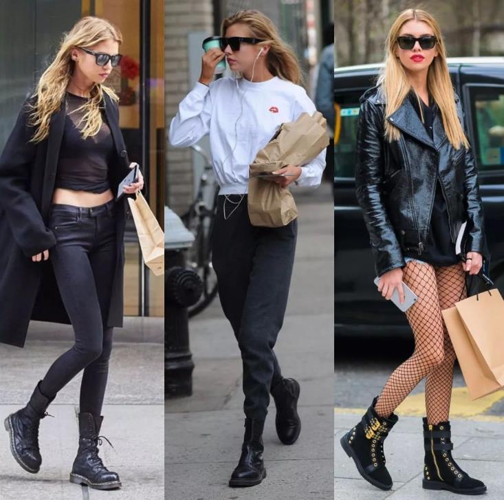 1. 马丁靴的颜色选择:日常生活中我们常见的百搭马丁靴的颜色无非就是黑、白、棕色调(冷棕、暖棕)都是非常百搭、出镜率很高的颜色,可以结合自己的服饰进行选择!