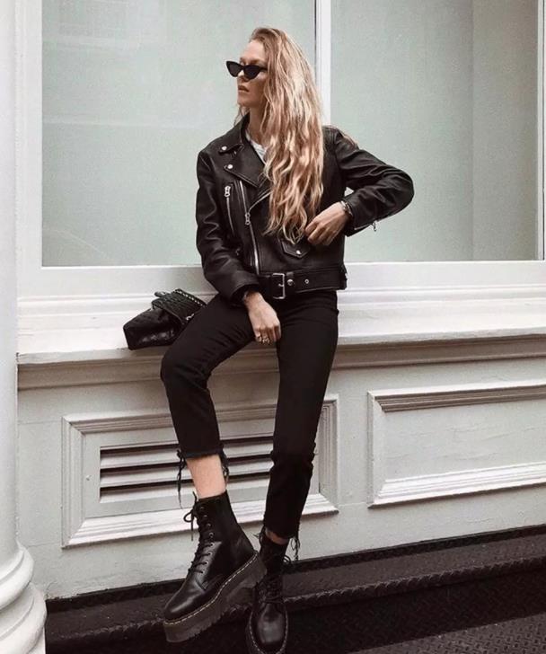 小皮衣是个性帅气又非常抗风保暖显身材的衣服,搭配休闲牛仔裤和马丁靴,时尚休闲又个性。