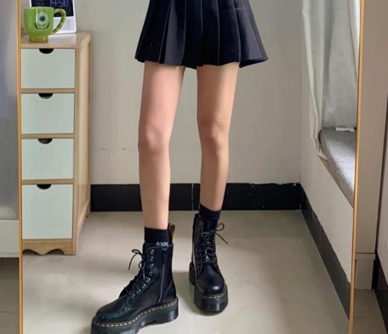 穿马丁靴要根据自己的腿型和身高来选择适合的孔数和高度,否则很容易会在视觉上造成小腿偏短的现象。孔数较少及短、中筒马丁靴一般能比较好的展示出效果,所以六孔马丁靴和八孔马丁靴的区别不仅仅是孔数,更重要的是孔数较少的六孔马丁靴更适合身高偏低的人选择。当然,怎样和衣服搭配,是马丁靴穿好看的关键因素,所以在实际选择时还要关注马丁靴的款式、材质等。