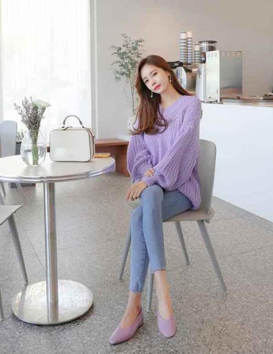 1. 白色大衣:毛衣配大衣,只要大家选择的毛衣不太长都是可以的,并且紫色毛衣的搭配推荐大家用白色的大衣,因为紫色和白色可以相互中和,不会显得紫色单穿这么的显眼和突兀,并且白色也可以很完美的提升自己的气质。