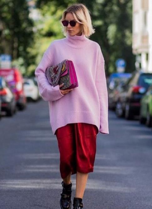 粉色和红色搭配热情有活力,但如果是大红会过于夸张,不适合日常,而且也非常挑人,所以可以选择粉色+酒红色,穿起来更低调优雅。