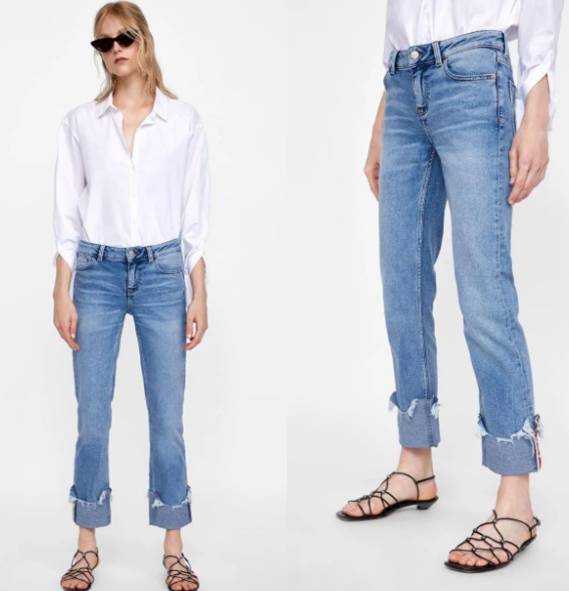 裤管细边折法与单层反折的方法是很相似的。只需要将裤管按照裤子的缝线进行对折,这样的做法会使牛仔裤看起来更为的直筒,使你的腿部看起来更加的有型!
