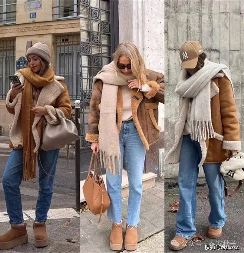 如浅驼色外套配牛仔裤,减龄又保暖。出门时踩双浅驼色雪地靴,视觉上顺色延伸显高又精致,轻松拿捏冬日穿搭质感。