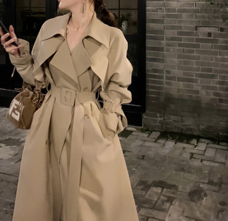卡其色风衣可以搭配卡其色宽松裤,卡其色风衣本事就是比较百搭的服饰,加上同色系的宽松款形成比较整体的穿搭,是比较不会出错的穿搭方法,米色风衣搭配紧身裤可以很好地凸显身材。