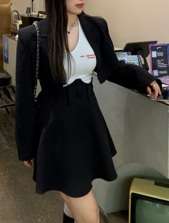 我们穿搭是需要根据的身上的颜色来思考的,黑色算是日常生活中经常见到的颜色,其实黑色是比较百搭的颜色,不管搭配什么颜色都不会除差错,黑色上衣搭配裙子是一个很好地选择。