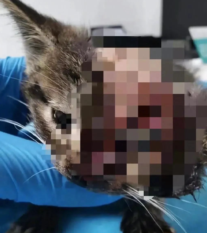 “我们的志愿者们常常见识过各种虐待动物的变态行为,揭露这些恶行已经成为了他们的家常便饭。然而,这一次,一个17岁的高中生的虐猫行为却让我们感到无比震惊和愤怒。这只不到两个月大的小奶猫竟然遭受了他多次的虐待。它的头皮被扒开,露出了可怕的大脑;下颚骨被掰断,鼻梁断裂溃烂……” 图片可能引起不适