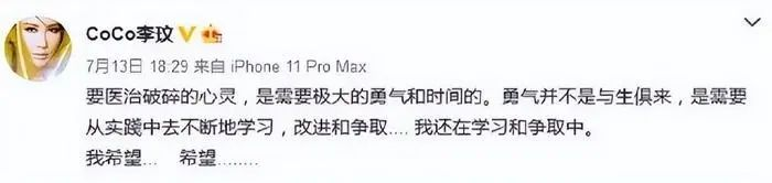 李玟的最后一条微博是官宣《战歌》上线,而这也成为了她最后一首歌。