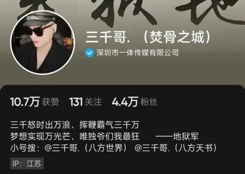 “三千哥”饮酒过量以后,为何没有亲人送他去医院?赵先生解释了原因:“喝酒后他就是一个人,一直是这样,他身边留不住人的,边上有人会憋不住骂人。等到下午家人发现,人都已经去世了,连抢救的机会都没给。”在“三千哥”的悲剧发生后,有人查询了他的平台账号,发现三千哥(八方世界)、三千哥(八方天书)的账号已经注销。三千哥(9237)的账号则是被封禁,只剩三千哥.(焚骨之城)的账号仍能正常观看。