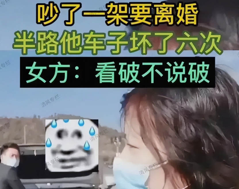夫妻关系,生活在一起,难免不会产生冲突,有时候口角之争,一下子就好了,不过有些人可能嘴巴嘟嘟的,似乎不争出输赢不罢休。一段婚姻走向毁灭的时候,女人就应该在内心问问自己,是否已经彻底不爱了,是否对他彻底放弃希望了,自己在内心问问自己,他是不是也不爱你了?彼此都不爱了,不理解,那才是真的不能将就下去。黑龙江有一对夫妻,本来春节期间,是快快乐乐高高兴兴、幸福幸福的,谁知道她们夫妻两人因为一些小事情产生冲突,年轻人嘛,也容易冲动。她们在家里经过一段时间的冲突冷战,最后决定还是分开,各过各的生活为好。因此在确定分开之后,她们开着小车去民政局办理离婚手续。不料半路意外频发,还是一个让人想不到的借口,令女子无语了。女子说,男子开小车开到半路,竟然坏了6次,其中小车加油加了两次……