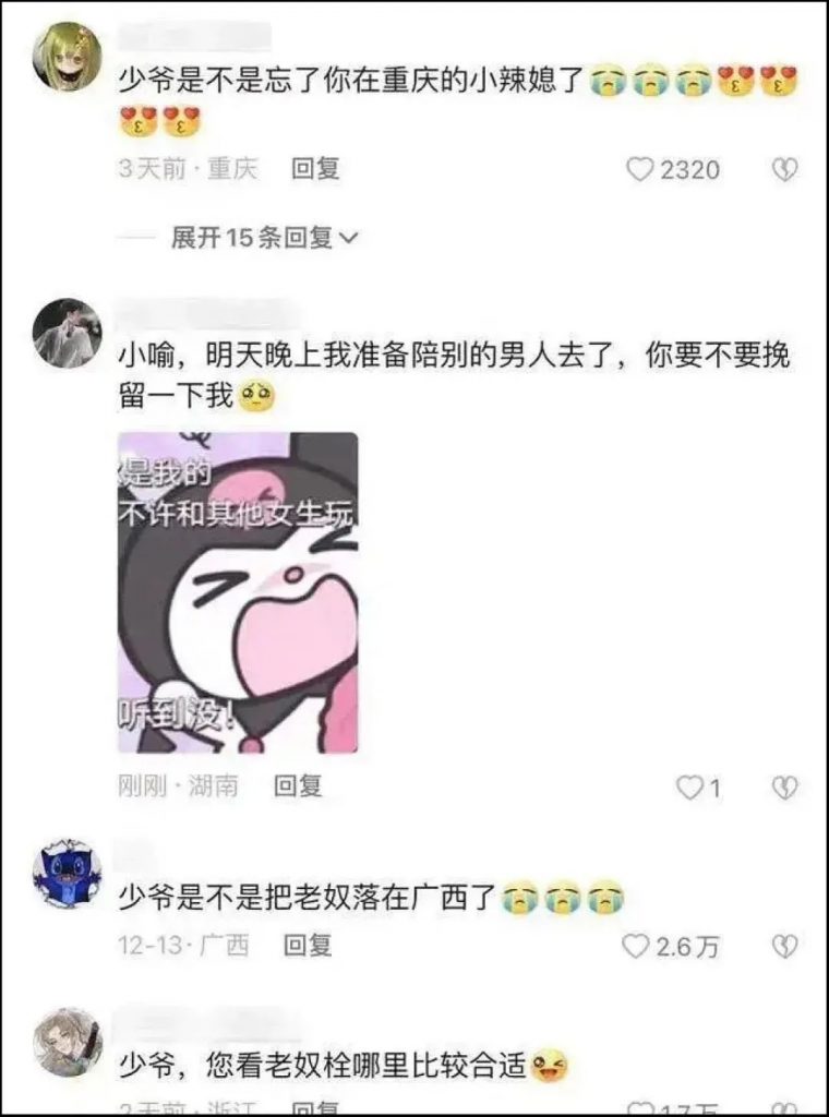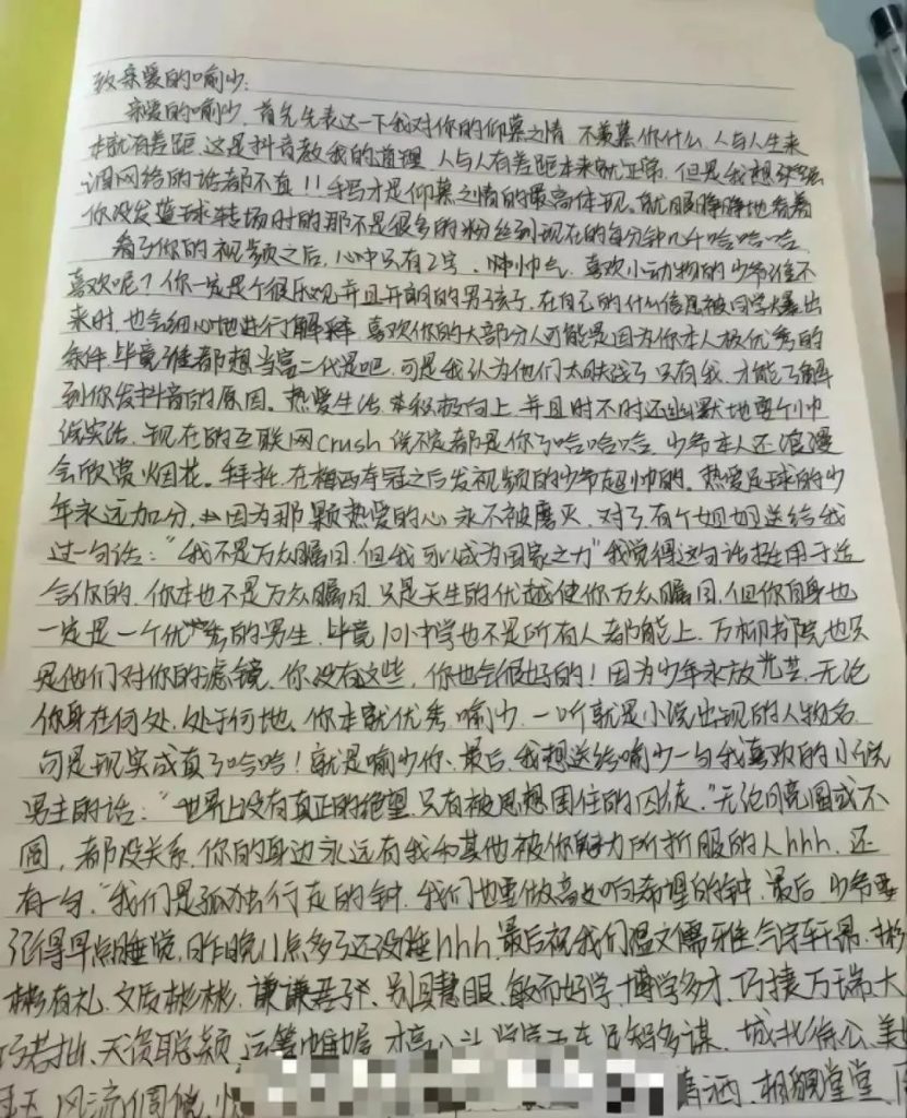 无数人在线许愿,立志2023年成为少爷的女人。甚至有狂热粉丝手写极尽露骨的“求偶信”,随便摘抄几句,大家自行品鉴:“亲爱的喻少,首先先表达一下我对你的仰慕之情……”“看了你的视频之后,心中只有2字:'帅气',喜欢小动物的少爷谁不喜欢呢?”看完这令人脚趾扣出三室一厅的文字,你可能会以为作者是哪位涉世未深的小女孩,但实际上,这竟是出自一位22岁成年女性的手笔……还有人洋洋洒洒写下了长篇大论,表白。