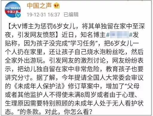 很难想象这是一个心智正常的成年母亲干出来的事。但这确实是一个在微博上拥有百万粉丝的育儿博主分享的自己的育儿经历,一发出,就引起了巨大争议和网友的愤怒。