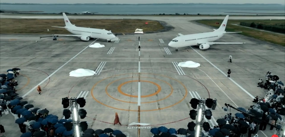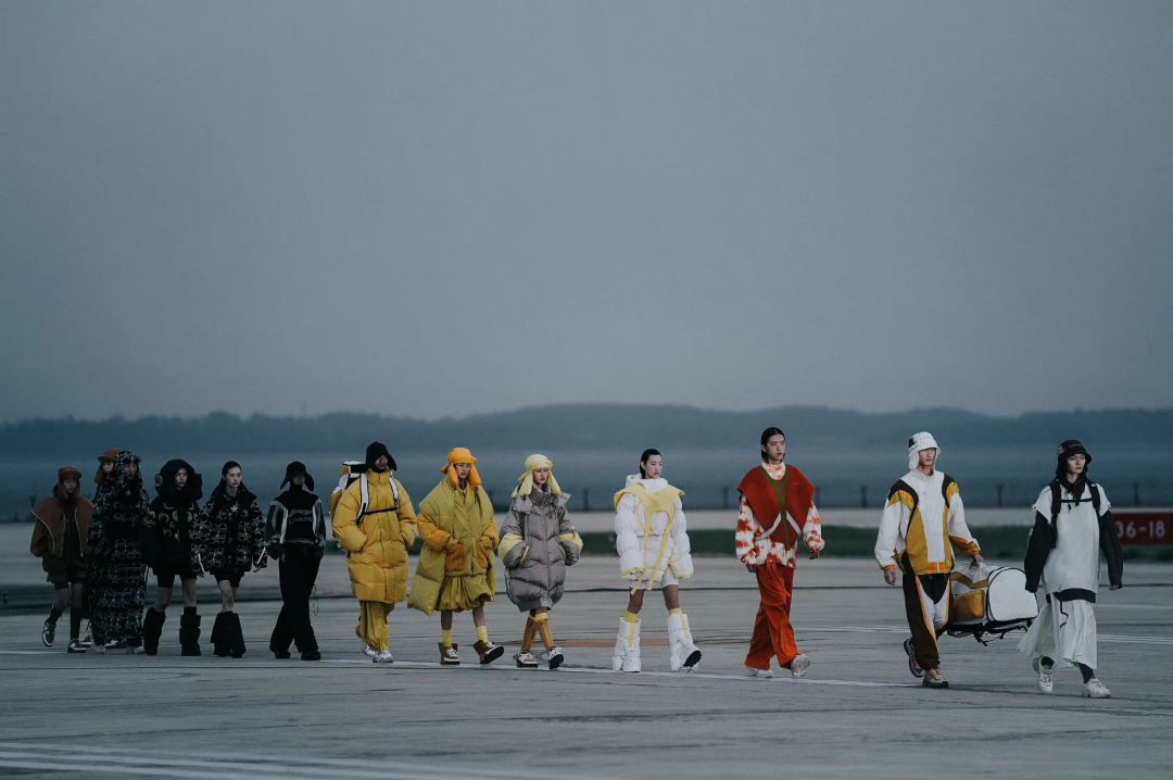 模特都是从飞机上走下来,和以往的T台的感觉很不一样。
