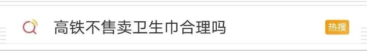 不久,铁路12306回应:卫生巾这类是不正常售卖的,属于私人物品。接着,#高铁不售卖卫生巾合理吗#就被顶上了热议话题。