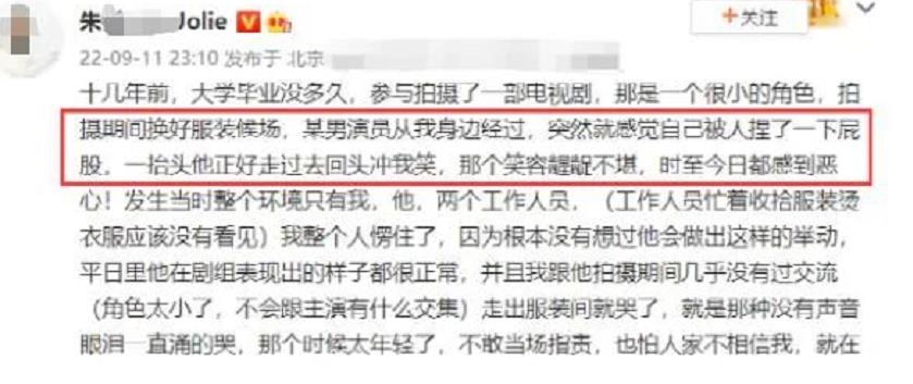 身为公众人物,更应该时刻注意分寸感,不过话又说回来,其实娱乐圈里类似这样的“揩油”事件,并不在少数。沙溢妻子胡可的闺蜜,以及他们孩子的干妈,朱锐便曝光了自己的亲身经历。据其所说,当时她刚大学毕业没多久,在拍某部戏时饰演了一个小角色。片场中的朱锐换好衣服后正安静候场,而该剧的男主演经过朱锐身边时,故意用手摸了朱锐的屁股,还捏了一下。更过分的是,这位男主演竟不以为意,冲着朱锐露出一个极为龌龊的笑容。朱锐当场就呆住了,大脑一片空白,愣愣地站在原地。这一段经历让朱锐十几年过去了还记得那个男演员猥琐的眼神,令人恶心至极。