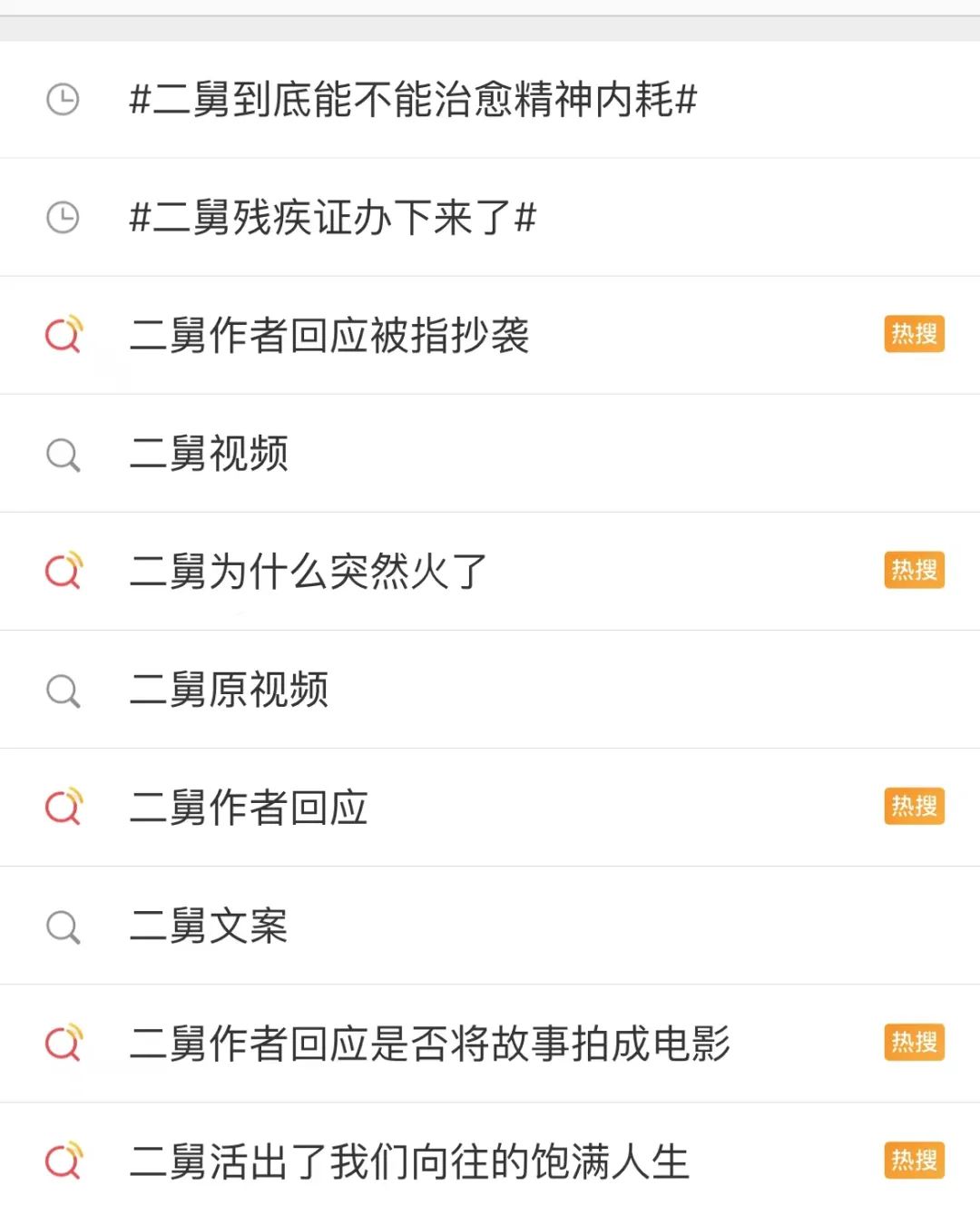 视频男主角“二舅”是一位66岁的老人,也就是UP主的二舅。二舅是乡村里的“少年天才”,门门功课名列前茅,本应前途光明的人生却因被赤脚医生错误施针落下终身残疾。在一瘸一拐的生活中,他通过自学木工本事,不仅养活自己和养女,陪伴着自己88岁的老母亲,还会帮助村里人解决各种琐碎棘手的修理问题。网友们把二舅的故事称为现实版《活着》,被他身上那种历经苦难、却依然豁达平静着热爱生活的品质打动和鼓舞,“敬二舅”的情绪在互联网舆论场里反复共振增强。7月25日视频发布,26日成为B站全站排行榜TOP1,有关二舅的词条屡次登上微博热搜,“二舅”几乎刷屏了每个人的社交平台。