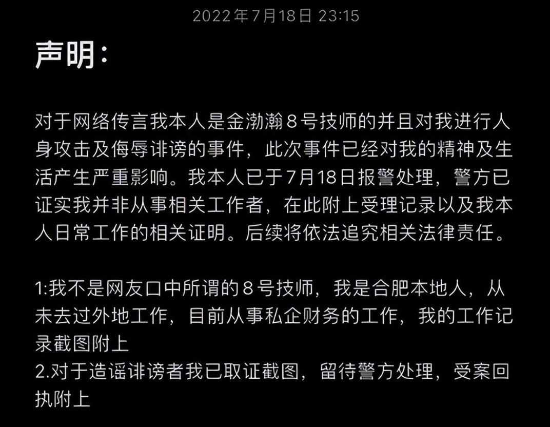 小慧兴高采烈地在社交平台上分享着人生中的幸福时刻,没想到这份喜悦很快成了噩梦。一条又一条“8号技师”的留言,在评论里刷屏。起初小慧并没有太在意,想着清者自清,可她的忍气吞声却让一些人越来越肆无忌惮。有人张口闭口“痛心”、“她工作起来好敬业”……话里话外满是调戏;还有人污言秽语,信誓旦旦地表示和小慧认识,享受过“998”的全套服务。有的是诋毁,也就是嫉妒,他们捏造事实,在背后故意诋毁造谣,还有的就是用谣言来获得心理上的发泄,思想阴暗的,没有自己的思想,反正就是你也不知道我是谁,你能怎么样,“我不好过,你也别好过”,这就是他们的心态,几乎就是变态的心理。更有甚者竟然直接私信小慧询问。美国作家马克.吐温曾说:“当真相在穿鞋的时候,谣言已经跑遍全城。”人们对小慧的身材和相貌评头论足,恶意揣测着各种花边细节。精神受创,工作和生活也受到了巨大影响,小慧选择了报警。