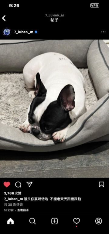 近日,有狗仔拍到鹿晗深夜与好友聚餐,之后鹿晗被好友搀扶上车,疑似醉酒,引发热议。4月13日晚,超人气偶像巨星鹿晗通过社交平台晒出了自家爱犬趴在狗窝的一张照片,并配文称“馒头你要听话哈,不能老天天跟着我拍”,疑似回应此前与好友聚餐喝酒被狗仔拍到一事,引起了很多人的关注。
