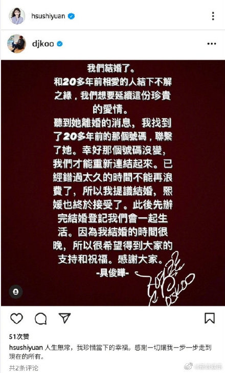 8日,韩国歌手具俊晔发文宣布与前女友大S结婚,随后大S也发文官宣:“人生无常,我珍惜当下的幸福。前大S在节目中谈及感情观,表示谈恋爱的时候会非常投入,但也会理智的面对,如果两人不是对的人会选择另一种关系相处。“感情轰轰烈烈,结束也会斩钉截铁。 大S真是活得太自由了