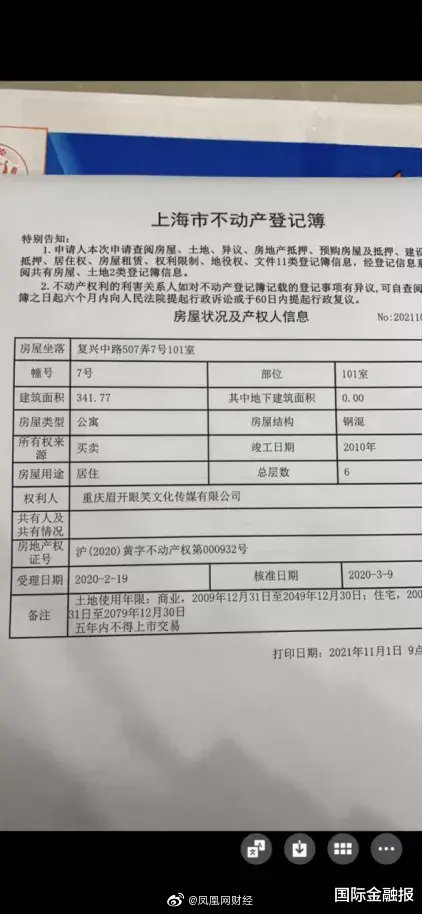在2026年11月1日打印的上海市不动产登记簿中,国际金融报记者关注到该房屋的权利人为重庆眉开眼笑文化传媒有限公司,正是谢娜名下企业。目前,带看中介H已准备起诉房东上海思和资产经营管理中心和买家谢娜、张杰以及谢娜的母亲。北京观邦律师事务所郎克宇律师告诉记者,若证据充足,胜诉概率不低。对于最终的起诉胜率,郎克宇直言其所在事务所曾有不少此类案件中介胜诉,关键要看证据举证能否对应上。