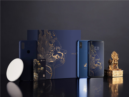 小米mix3故宫特别版图赏小米MIX3故宫特别版典藏礼盒内含小米MIX3故宫特别版,宝石蓝四曲面陶瓷机身,雕刻故宫神兽獬豸纹样,配色灵感来自于霁蓝釉,至尊配置10GB+256GB,其余同普通版小米MIX3一样。